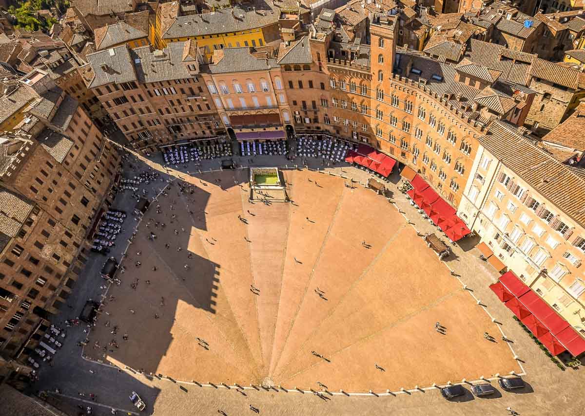 פיאצה דל קאמפו, המוקפת בבניינים מהמאה ה- 13, היא ללא ספק אחת הכיכרות היפות ביותר בעולם.